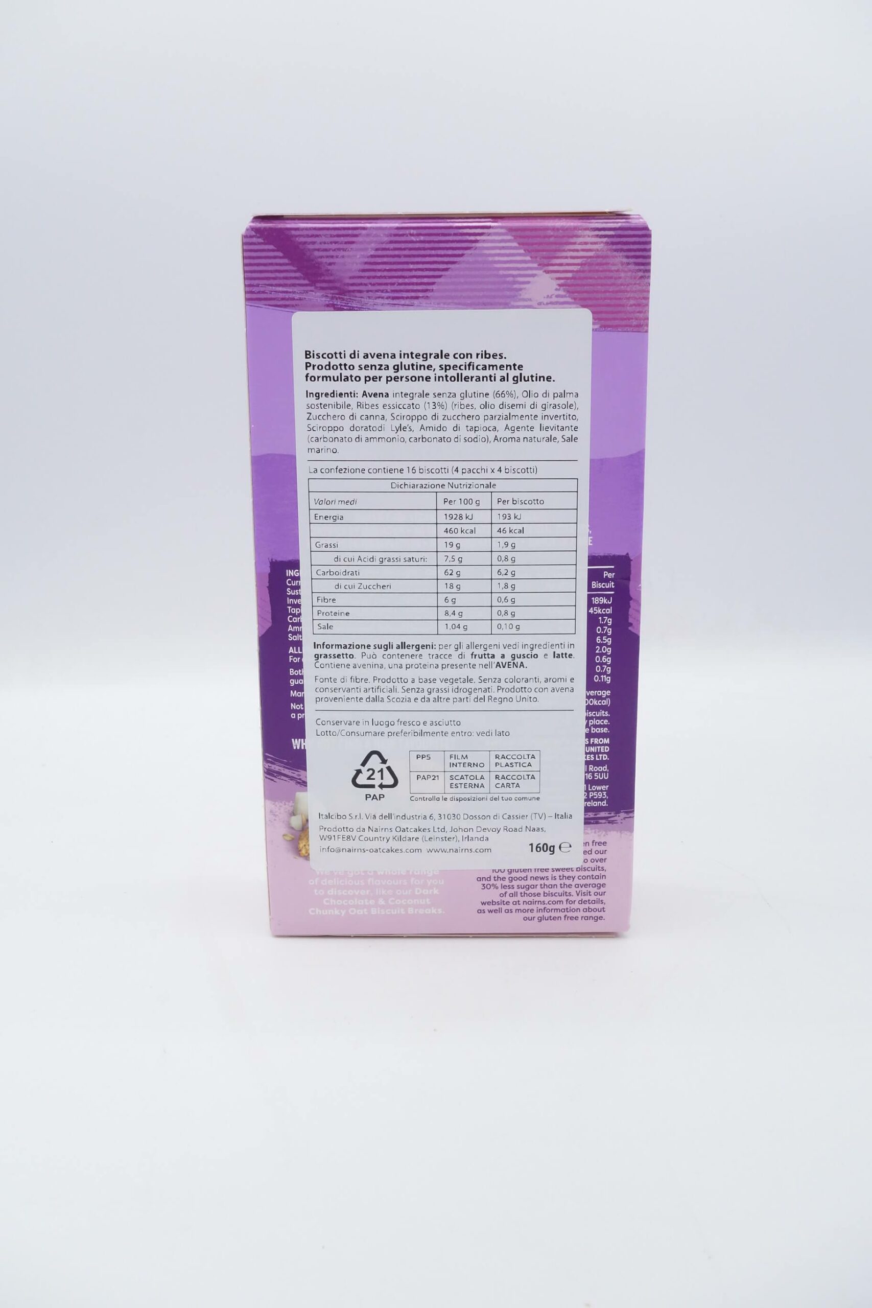 20 Aprile 2026BISCOTTI ALL’AVENA CON RIBES GR. 160 NAIRN’S