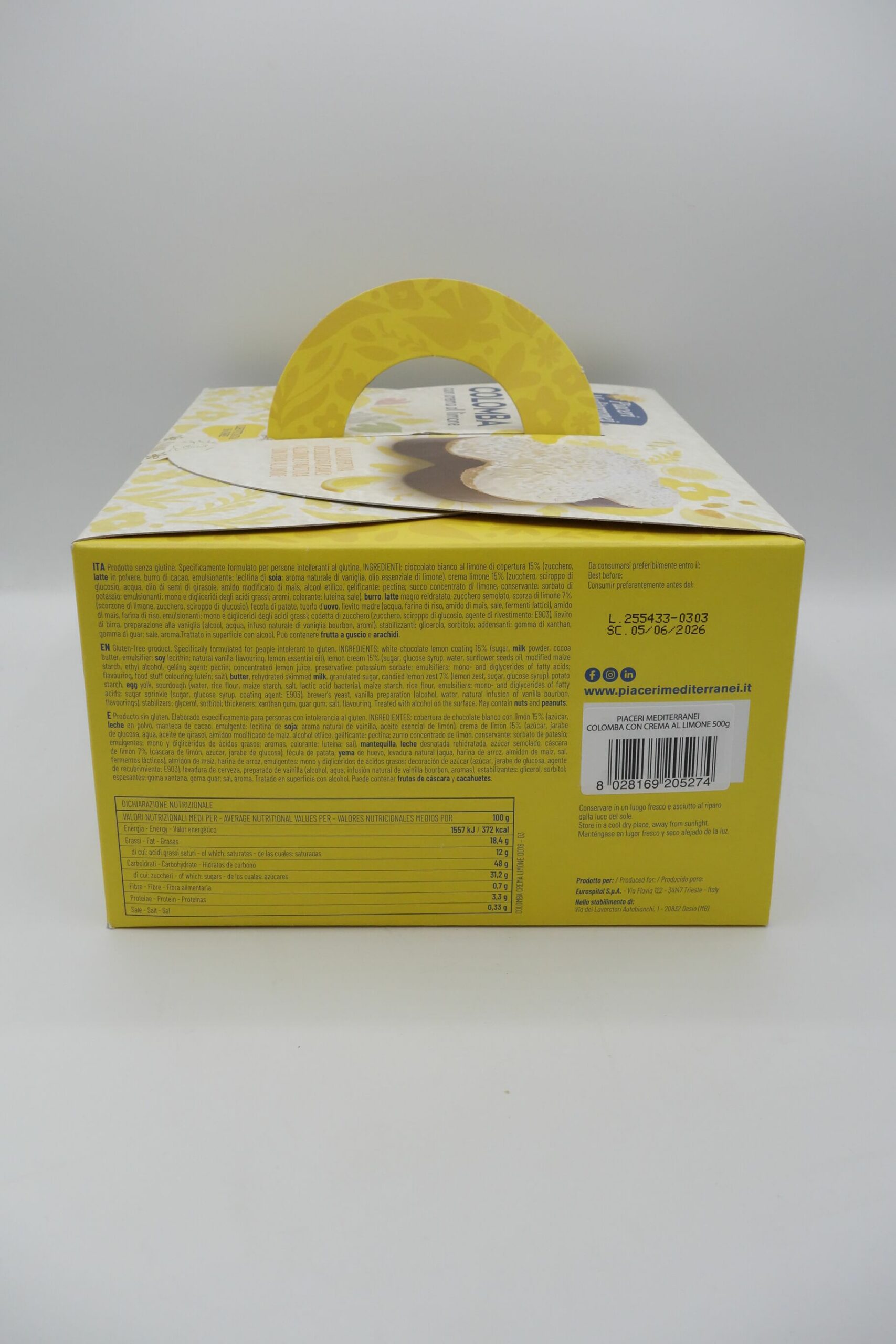 12 Marzo 2026Colomba con Crema al Limone ricoperta di Cioccolato Bianco gr500 Piaceri Mediterranei
