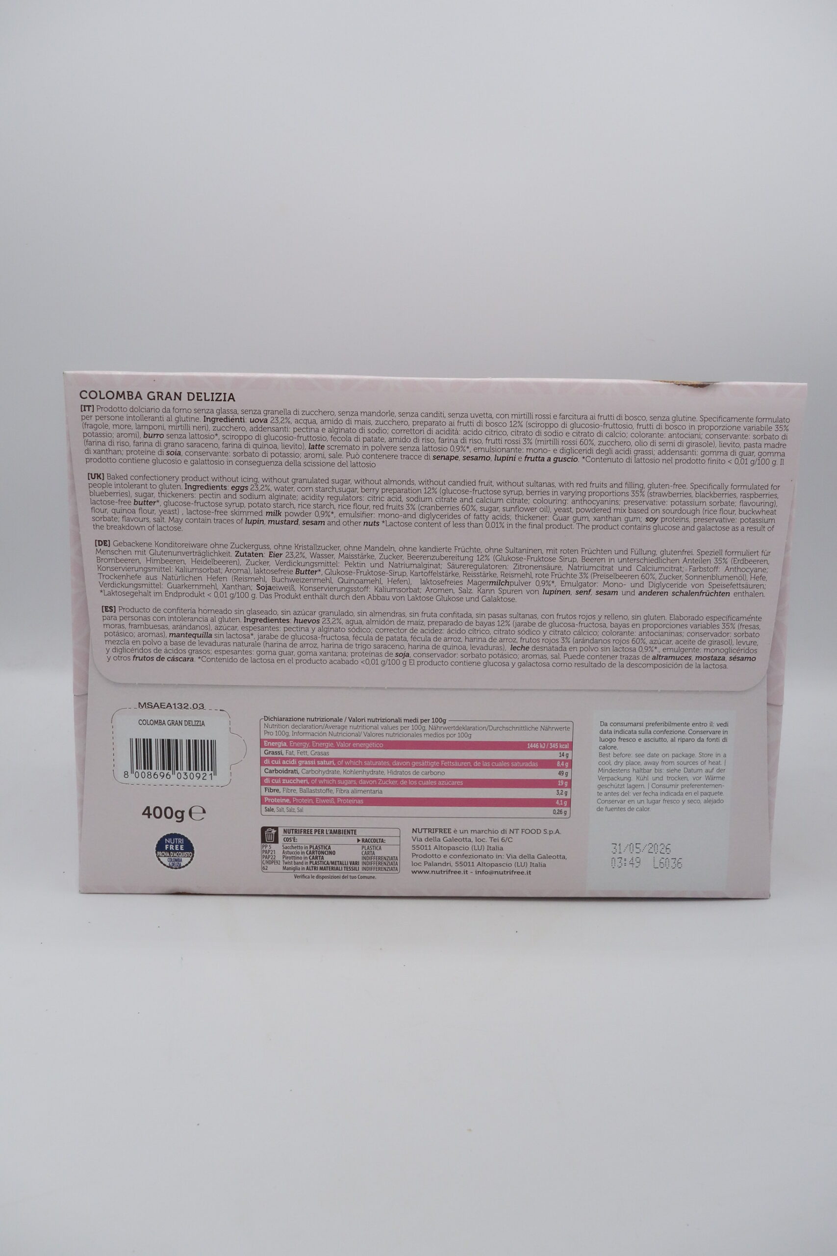 Colomba senza glutine e senza lattosio