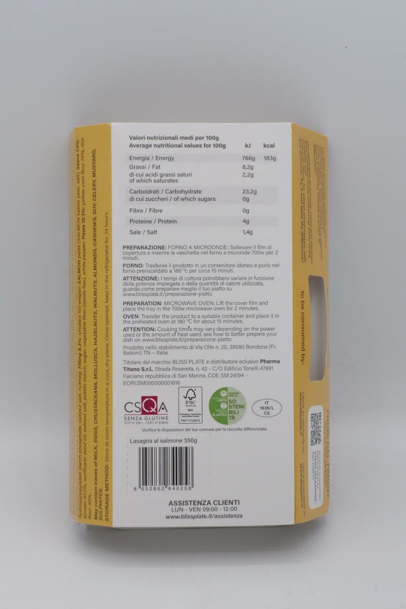 25 Settembre 2025Lasagna al Salmone gr 350 Bliss Plate